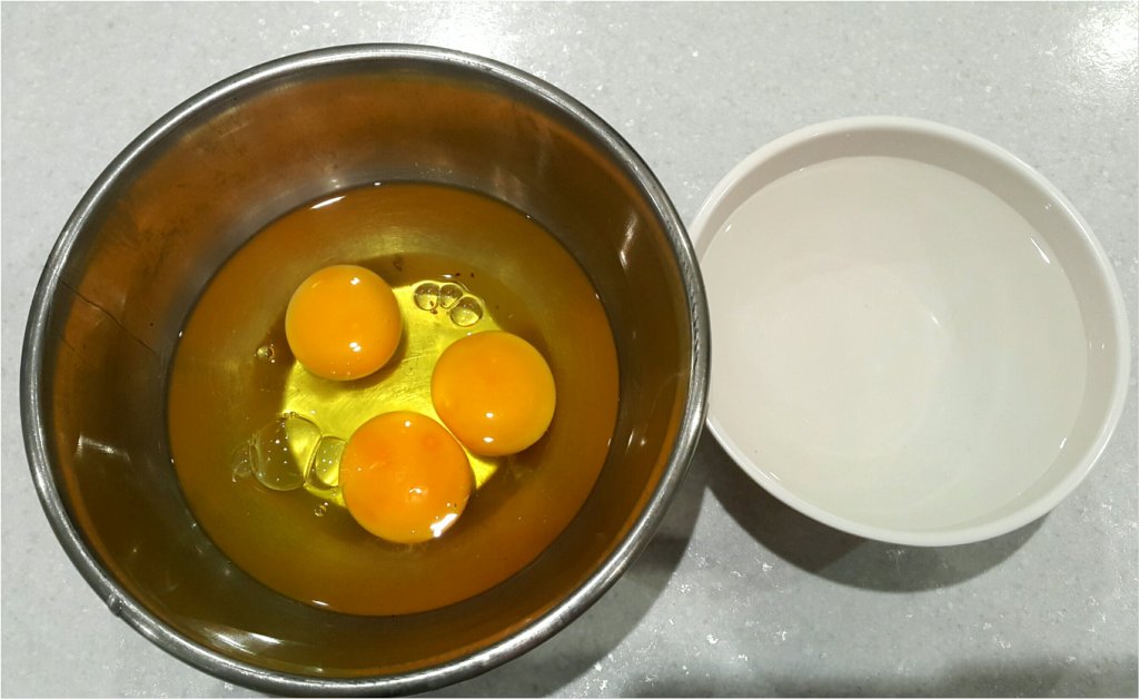 中蛋3隻,水一碗(普通食飯碗)