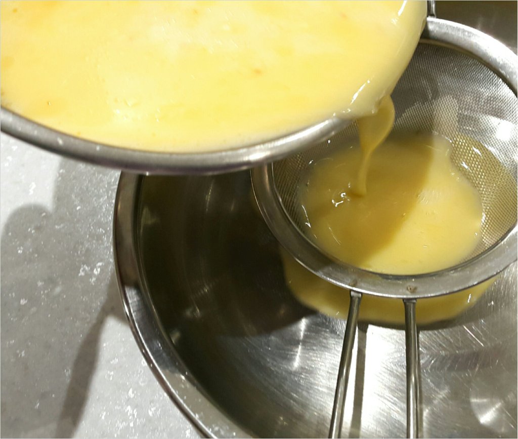 打散雞蛋後拌入一碗水加入2茶匙雞粉,少許麻油,過篩入碟中