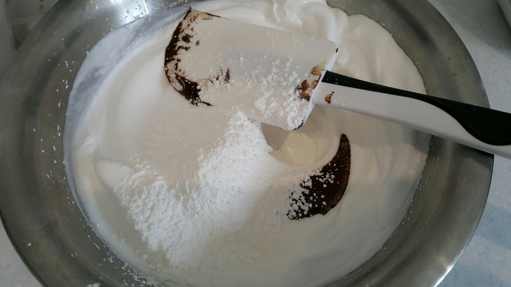打好蛋白後加入粟粉及咖啡溶液拌勻,用切拌方法攪拌,不可攪太快,如果不明白什麼是切拌法,可以觀看以下影片