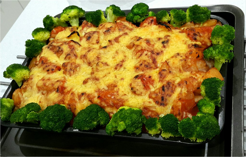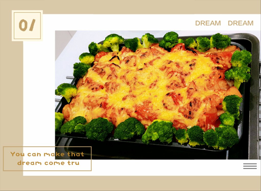 白灼西蘭花後放焗盤圍邊,更美觀又美味