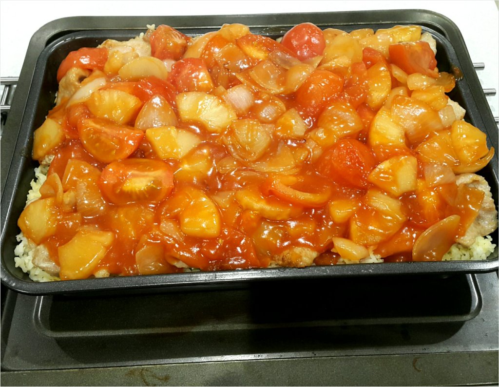 自從大仔識食大人飯餸之後,4歲那年開始,每年回港必定食焗豬扒飯,甜甜酸酸開胃餐,見老公和仔都喜歡食這個飯,所以回到英國家,第一時間就研究這個飯,不想做得太復習,所以我沒有煮炸豬扒,只是醃好豬扒後下鑊煎香放入飯裡一起焗,他們每次都食得好開心,如果你們小朋友都喜歡食這個飯餐,那就一起試試煮啦~