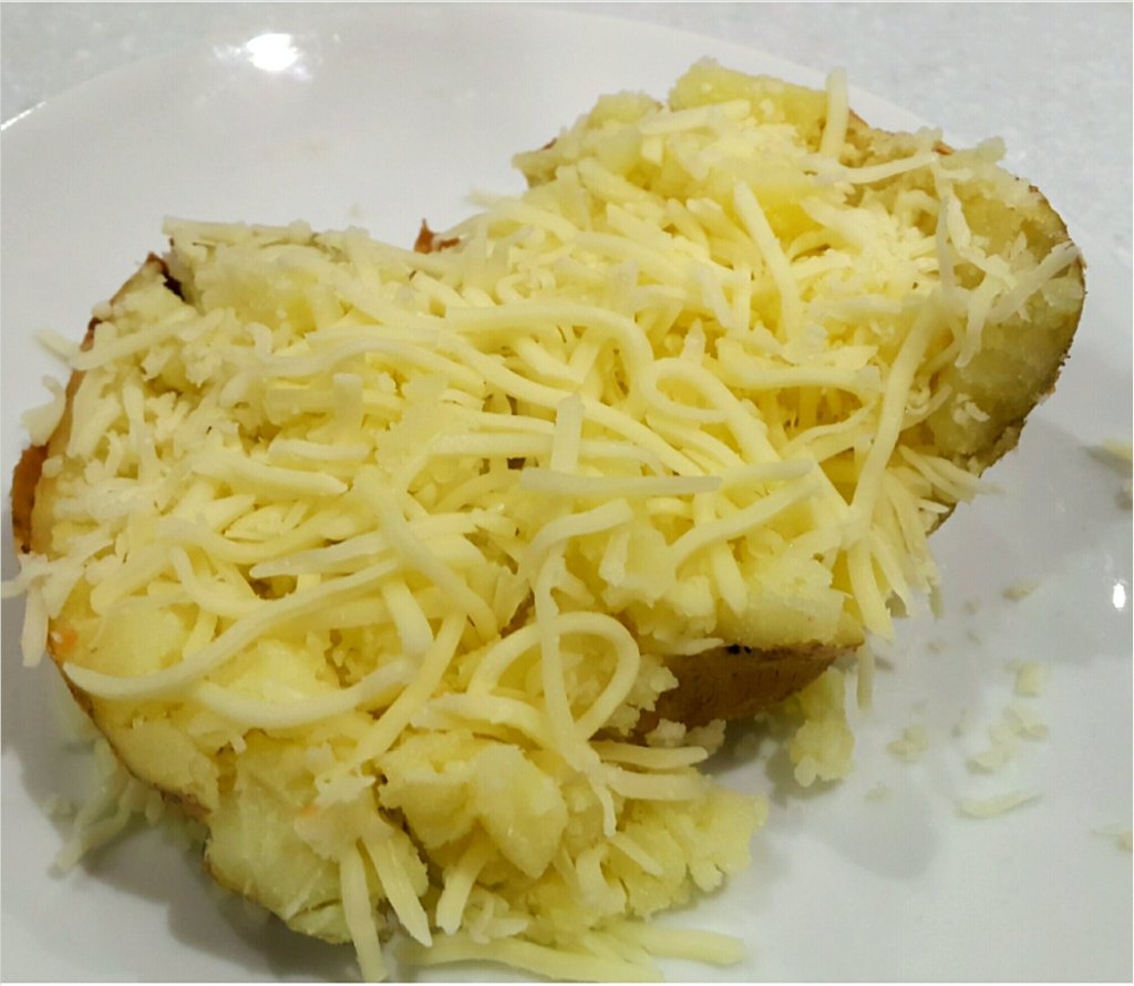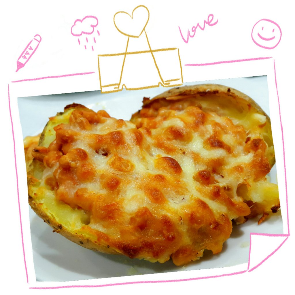 Jacket Potato是英國傳統小食,去過英國留學的人一定知道這款小食,食一個大個的焗馬鈴薯,其實是很飽的,中間釀有餡料,表面有焗至香脆的芝士,非常吸引的~