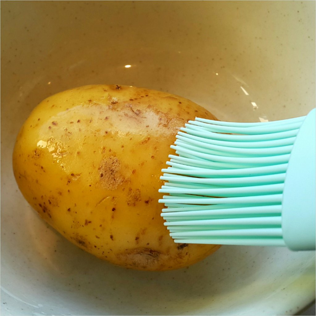 先預熱焗爐180度,薯仔洗乾淨,用义拮小孔