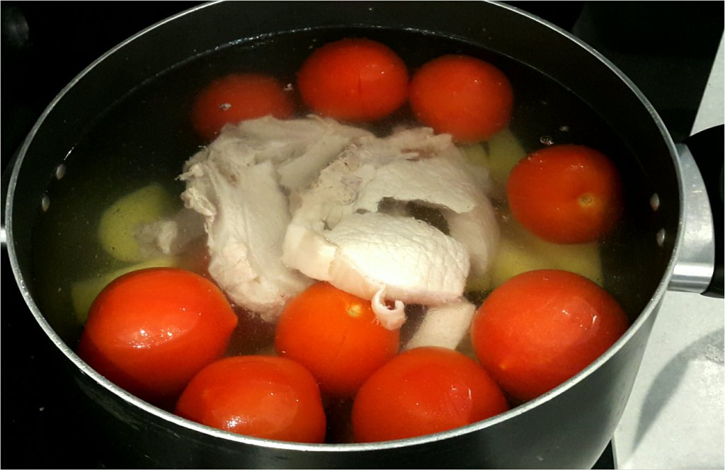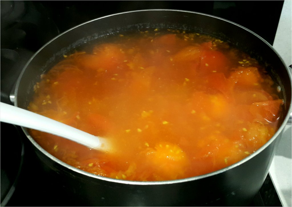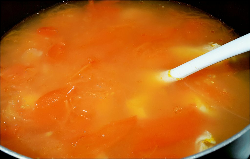 煲大約15分鐘,用湯殼壓爛番茄,會更出味