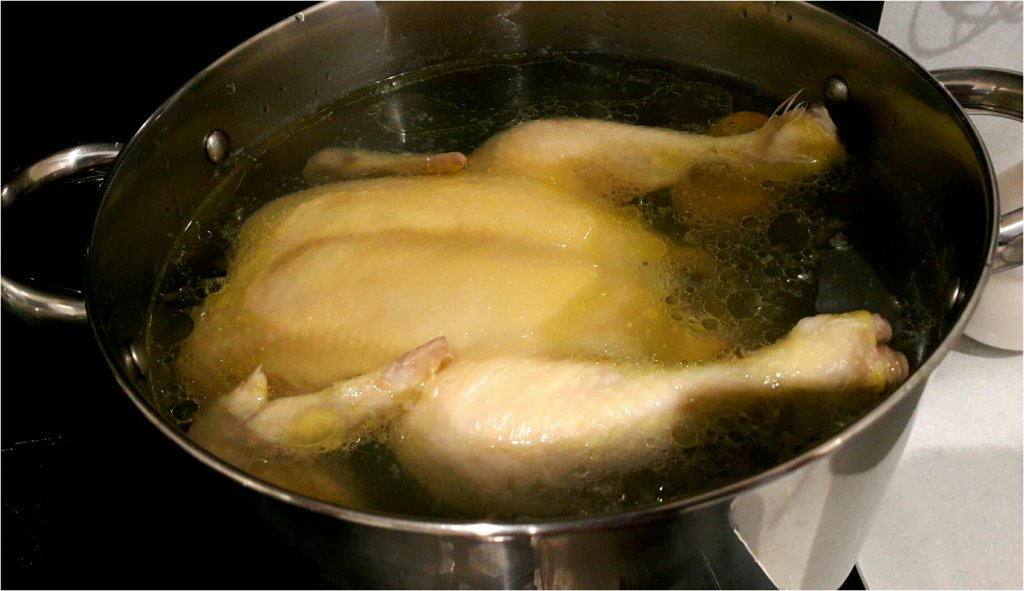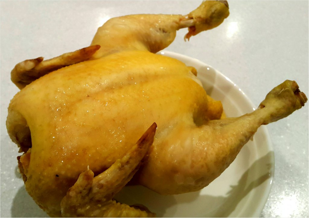 - 1.5kg雞,浸雞時間總共45分鐘,如果1.7kg,浸雞時間是50分鐘,記得5分鐘前要反轉雞及開大火滾起再轉細火浸多5分鐘