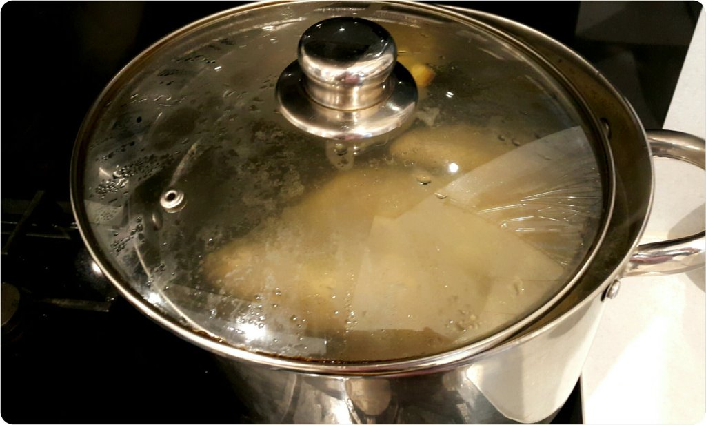 大火滾起轉細火,放斜蓋,不可滾起泡,浸40分鐘