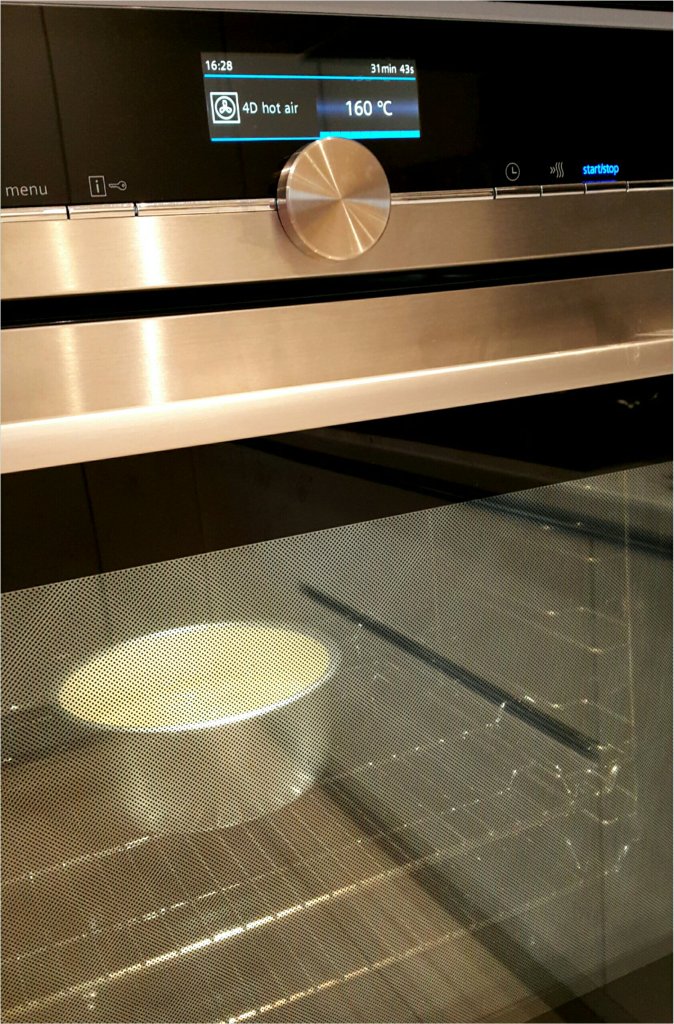 160度 30分鐘,早兩分鐘用竹籤拮入中間,無麵糊痴住竹籤為熟透