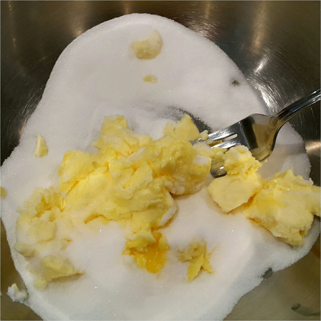牛油113克+糖113克先攪至米白色