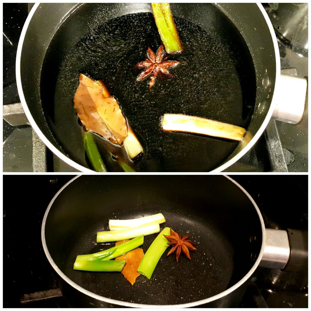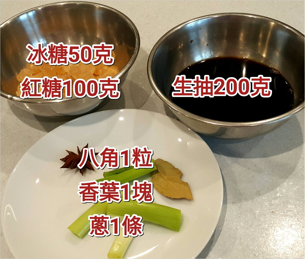 先用少許油爆香八角,蔥和香葉,之後加入200ml生抽和糖,大火滾後,轉細火慢慢滾至冰糖溶解完,放涼後會稠