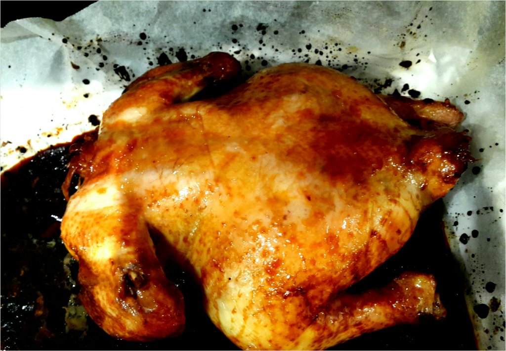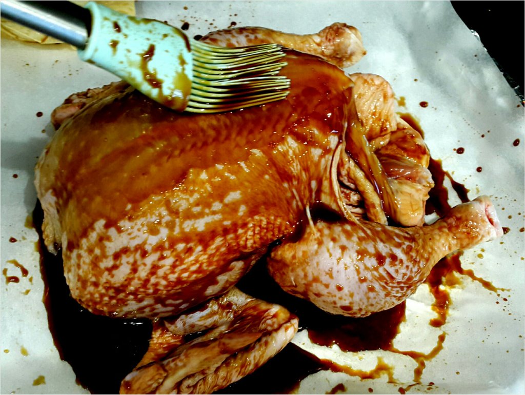 中途拿雞出來3次塗上豉油汁