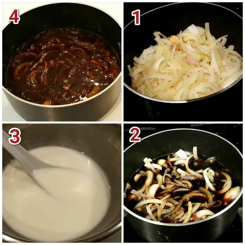 洋蔥汁,可以配任何扒餐食,這個汁是我自創出來,而家人也很喜歡,一般超級市場賣餐汁粉加水煮熱那些,我先生和兒子們都不太喜歡那味道,所以要研究大家喜歡的餐汁味道出來