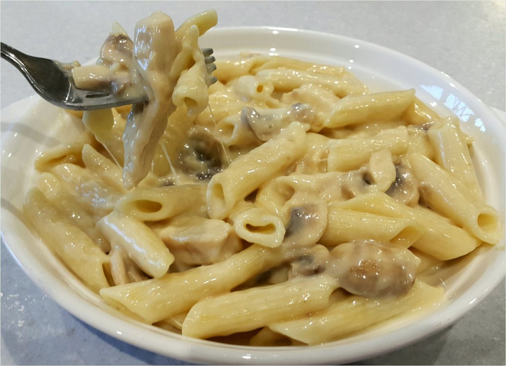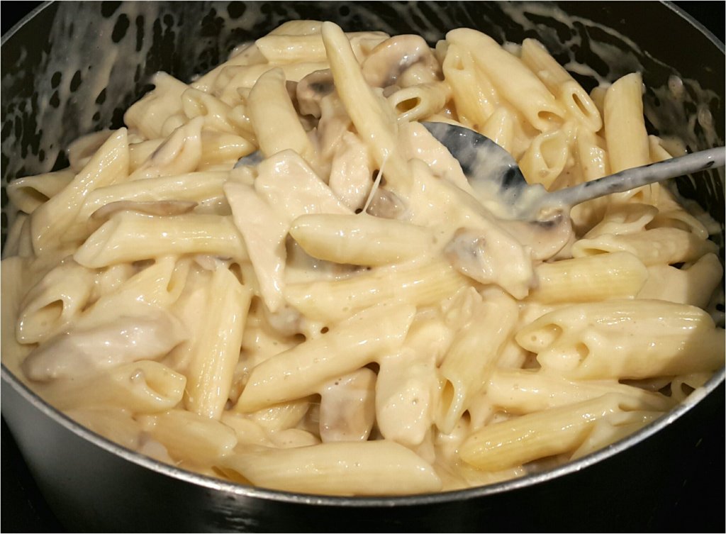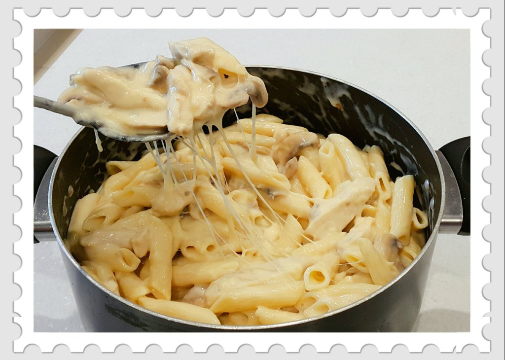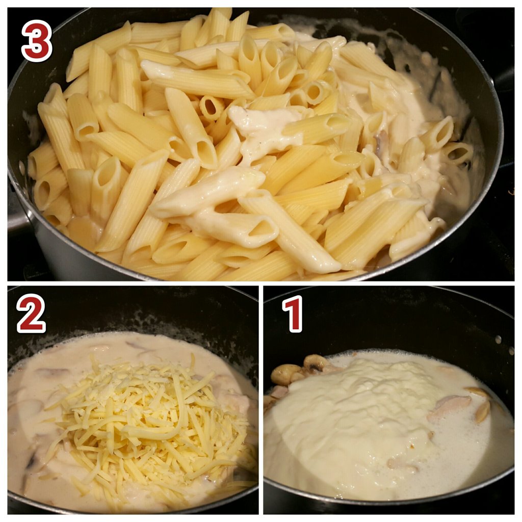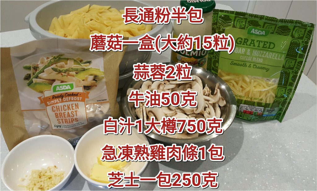 雞肉蘑菇白汁長通粉,可以說是快餐,很快便煮好,只要你識煮個白汁底,任何意粉和肉類也可以加入煮成,你們也可以試試~