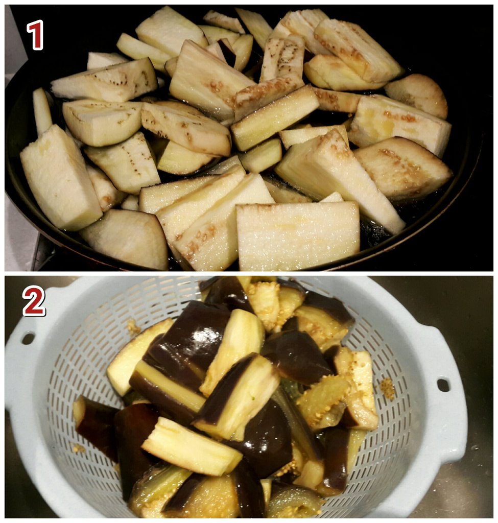 - 我是用油水滖至茄子軟身,代替油炸來保持紫色