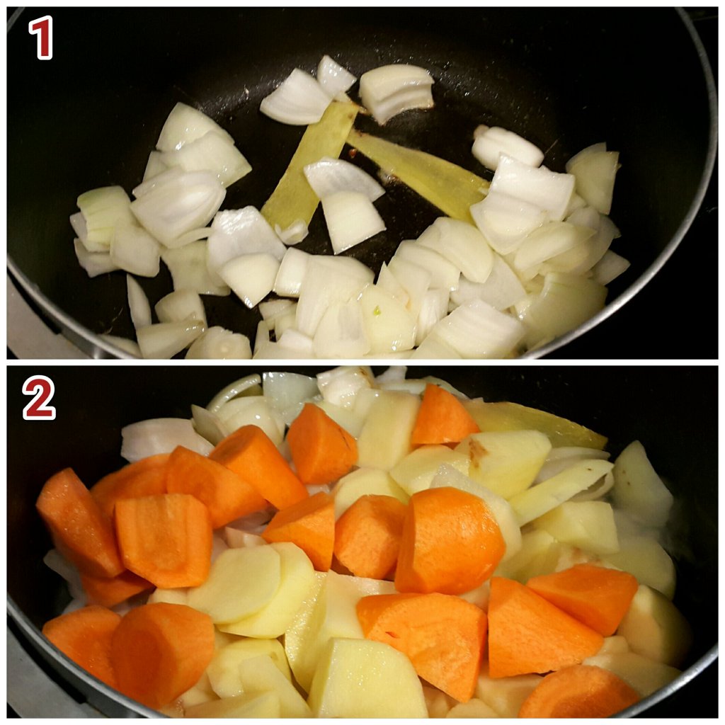 - 加入薯仔,甘筍略炒一會