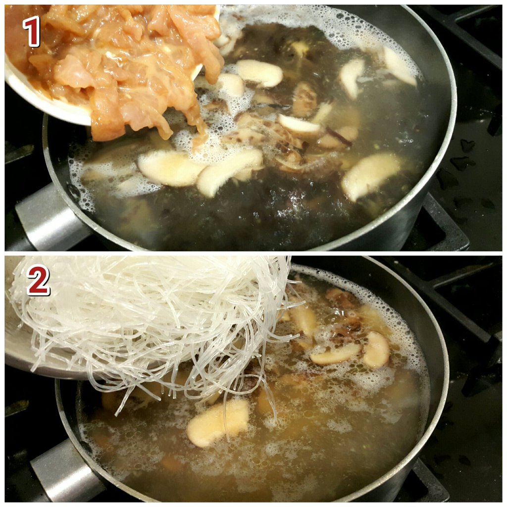 - 加入冬菇片和木耳絲