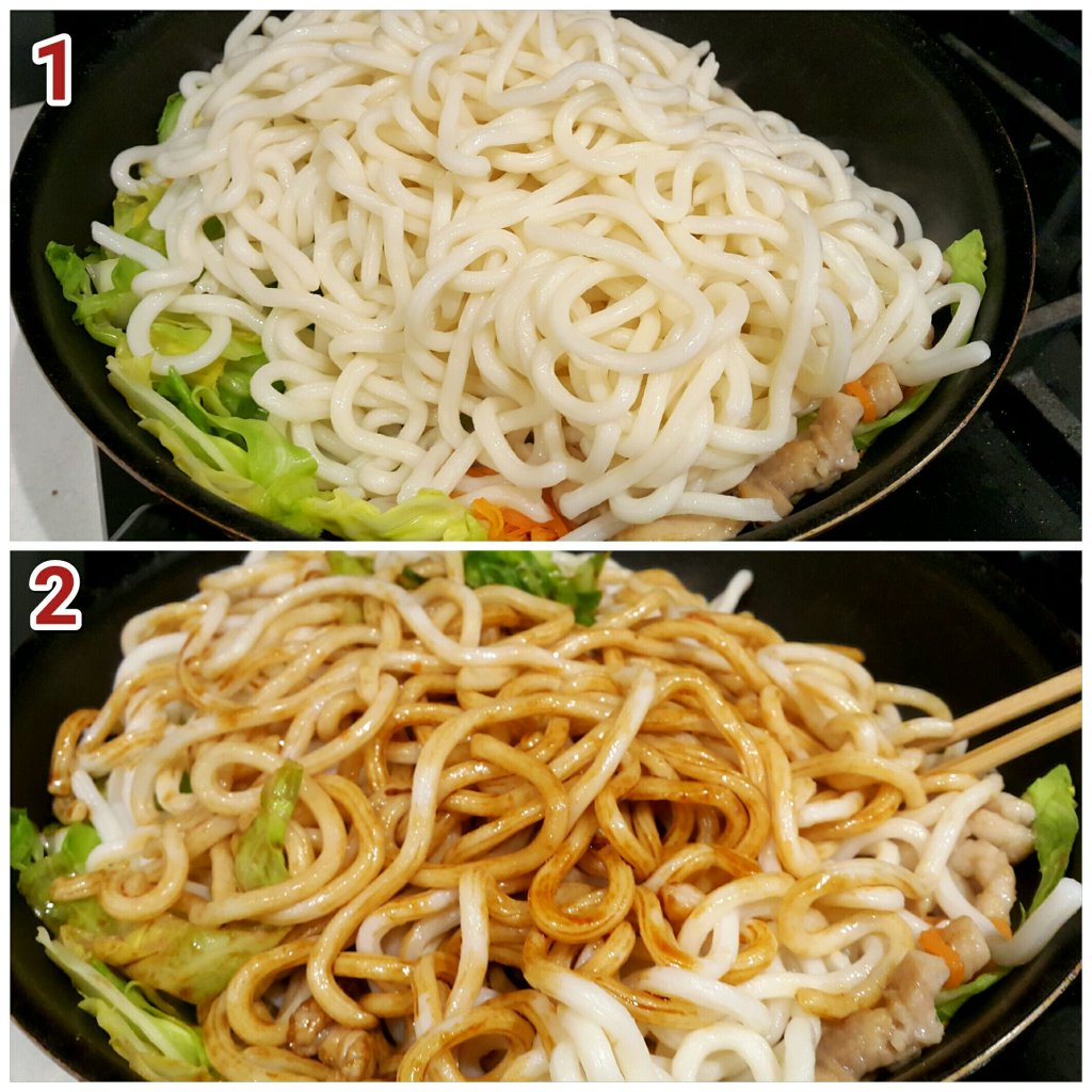 在英國住,無新鮮粗麵賣,唯有用近似的烏冬來炒,雖然無10成似,但有8成似都已經很滿足了~