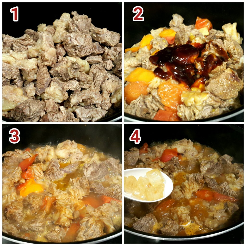 - 加入1湯匙冰糖,保持中大火煲滾後轉細火,斜蓋住,炆1個半小時,試味,牛朒軟身便可以