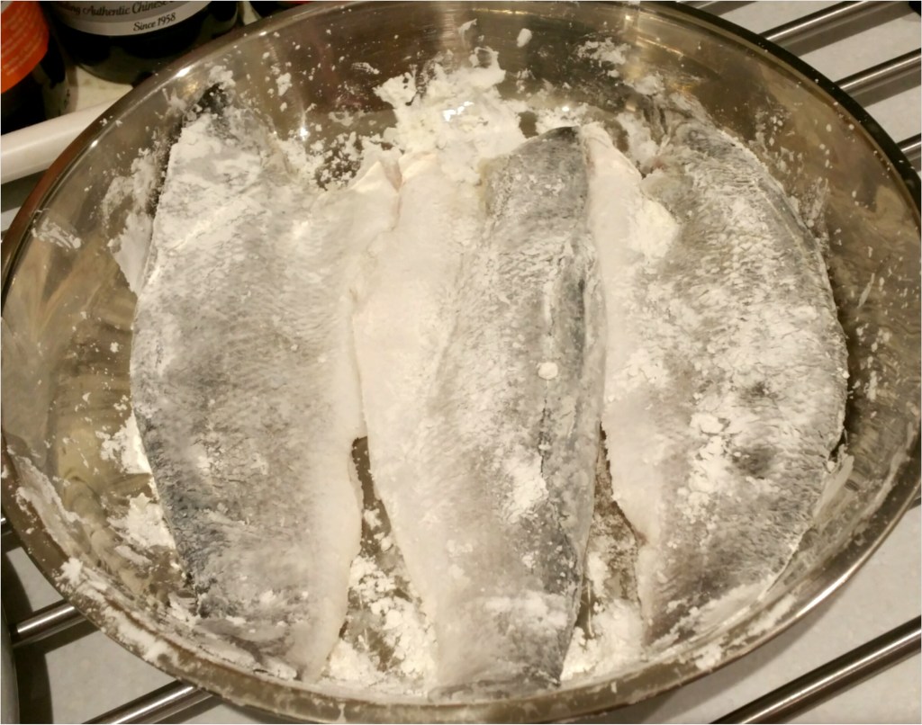 清洗魚後用廚紙印乾,再用粟粉拍滿魚兩邊備用