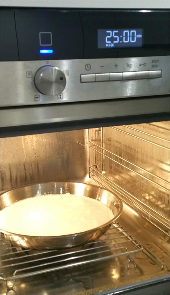 放置暖地方或蒸焗爐,大約30至36度,發酵1小時