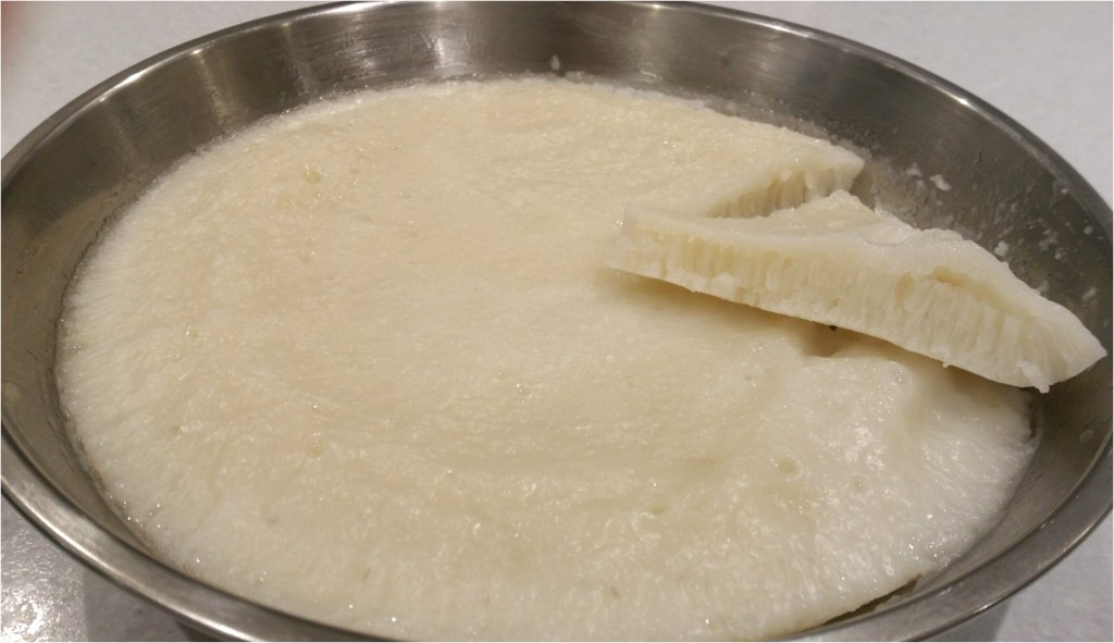 粘米粉150克加入清水150克拌勻,攪至沒有粉粒備用
