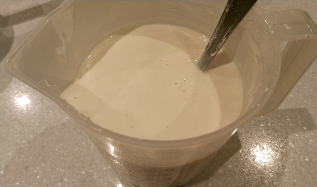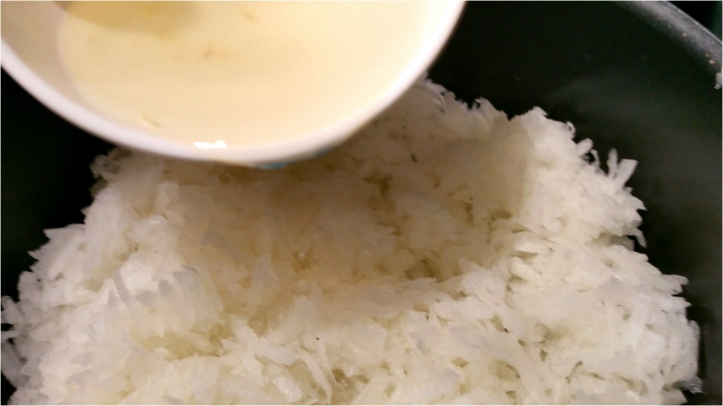 500克水加入所有調味料拌勻,之後加入850克粘米粉拌勻至沒有粉粒備用