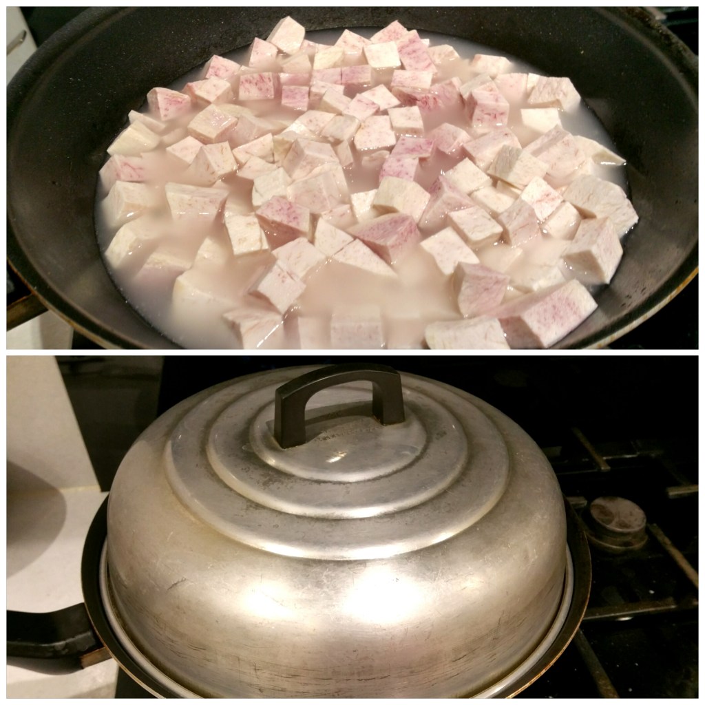 材料,芋頭切1.5cmx1.5cm四方粒狀備用