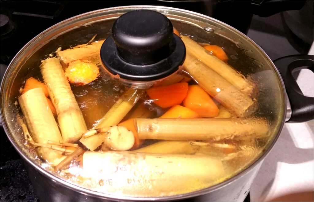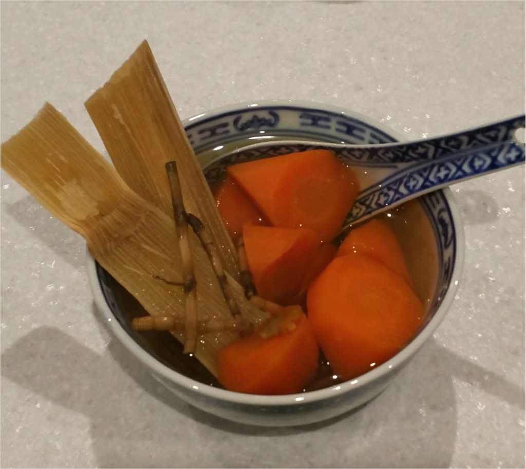 全部湯料洗乾淨,竹蓆切半,馬蹄去皮,紅蘿蔔切角,放入煲加水蓋住大火煲滾後轉細火,煲2小時後加入適量片糖調味便完成(我加了3條片糖,或可以不加)