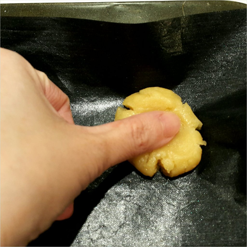搓圓後用手指按中間,略為按扁平些